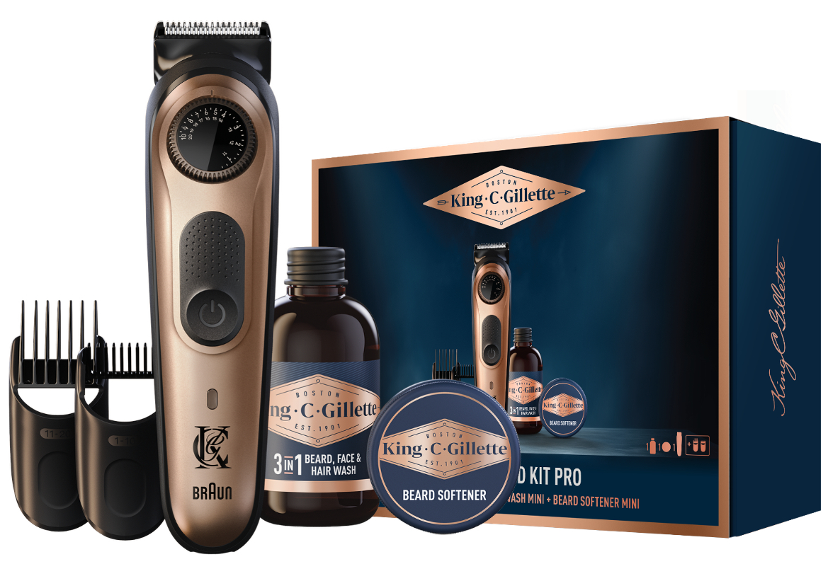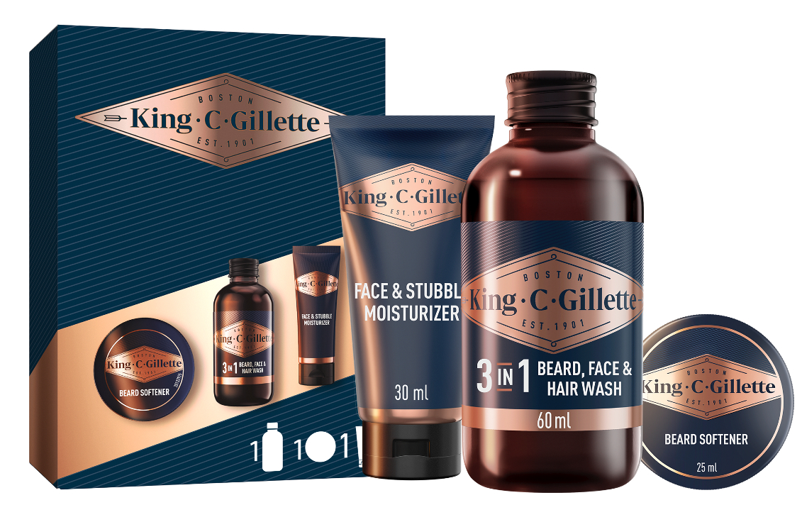 Mit über 120 Jahren Erfahrung in der Männerpflege verbindet King C. Gillette präzise Technologie mit zeitloser Handwerkskunst. Das Ergebnis: drei Geschenk-Sets, die jedem Bartträger ein Lächeln ins Gesicht zaubern – vom Einsteiger bis zum erfahrenen Bartliebhaber.