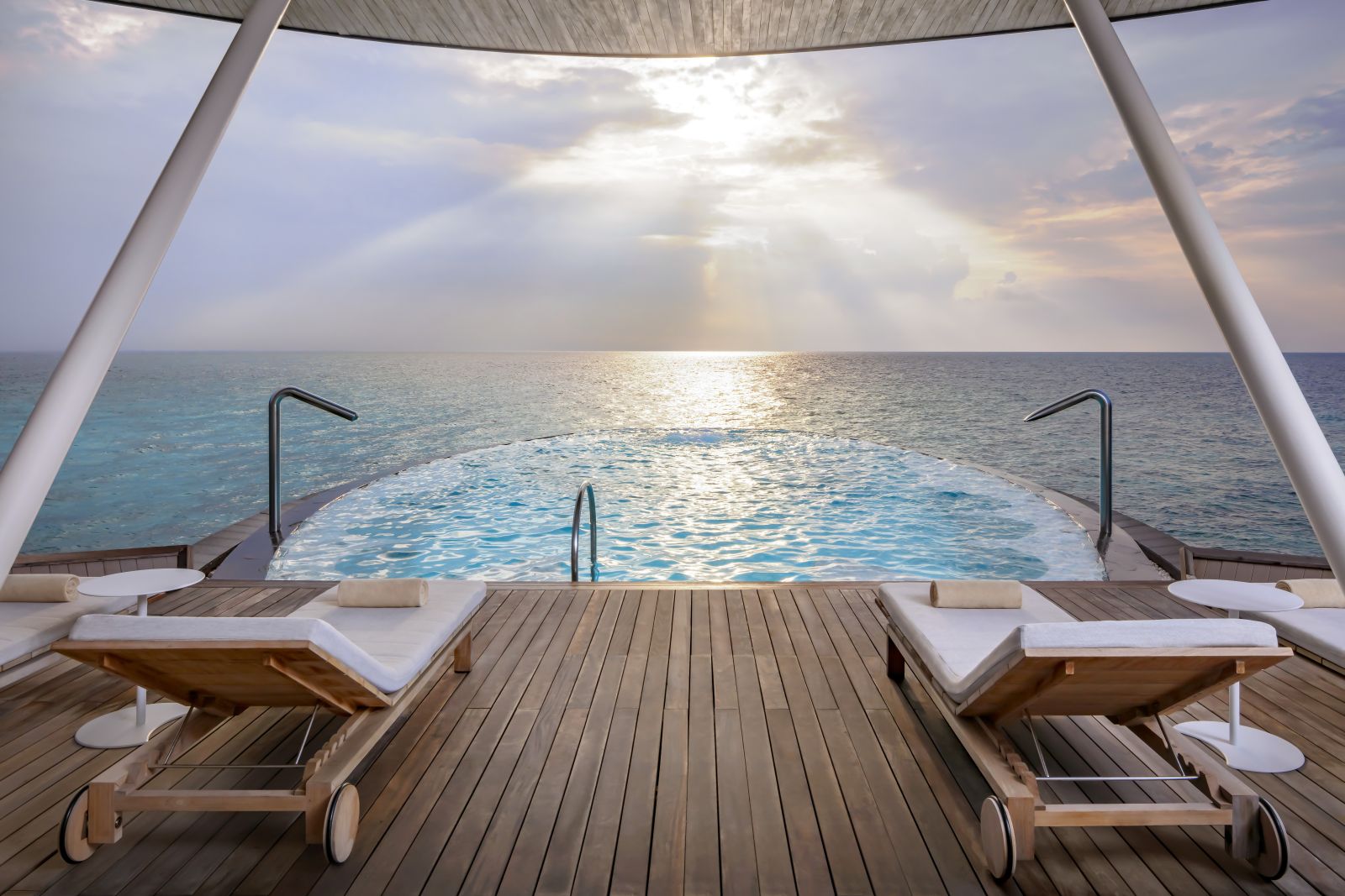 Auch die Umgebung selbst erzählt diese Geschichte weiter. Das Iridium Spa, auf Stelzen über der Lagune erbaut, öffnet sich vollständig zur Natur. Lichtdurchflutete Räume, sanfte Holztöne und der endlose Blick auf das Wasser schaffen eine Atmosphäre, die sofort zur Ruhe bringt. Unter den Füßen gleiten Fische vorbei, während über einem nur Himmel und Weite liegen.