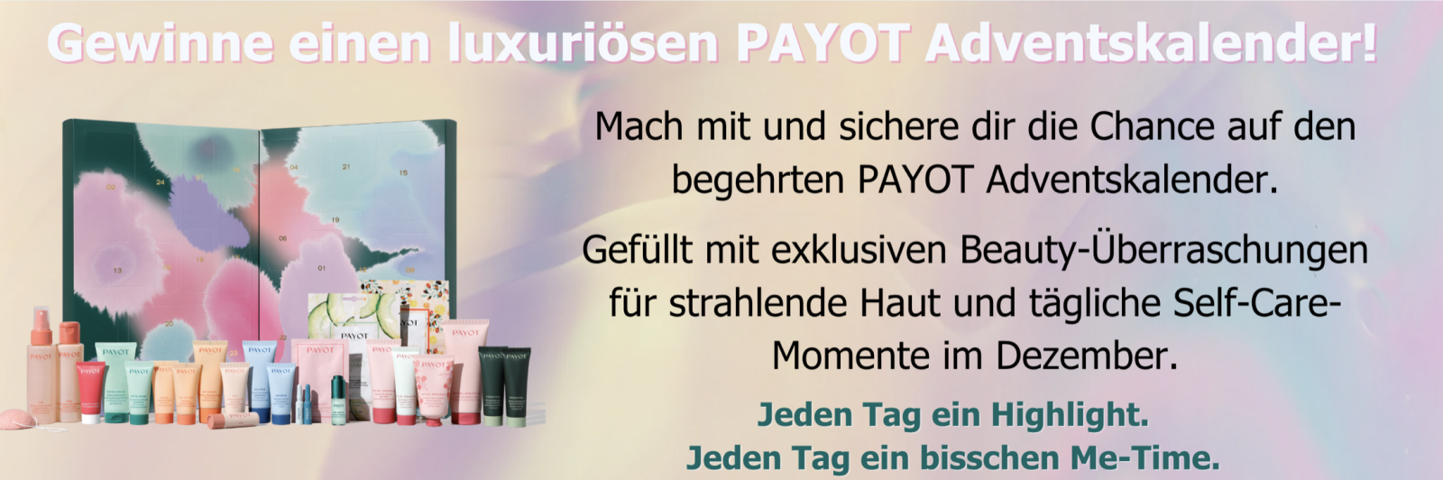 Wir verlosen einen PAYOT Adventskalender. Bei Interesse eine E-mail mit dem Stichwort "PAYOT X-MAS 2025" und Ihrem vollständigen Namen und Anschrift an: info@momberg-media.de senden.